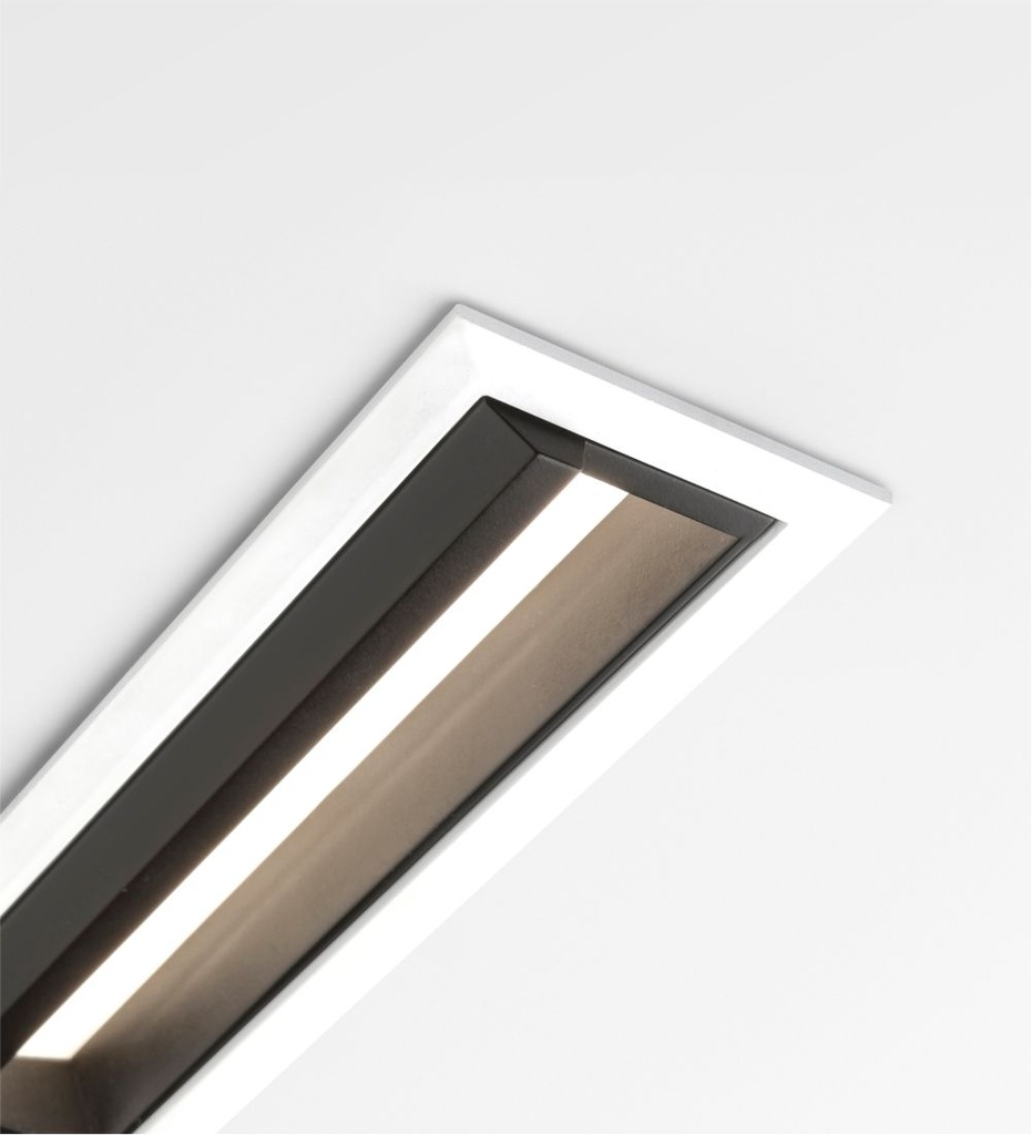 Empotrable lineal de 1 y 2 luces wallwasher con bafle antideslumbrante y cuerpo de inyección de aluminio. Iluminación barrido de pared homogéneo.